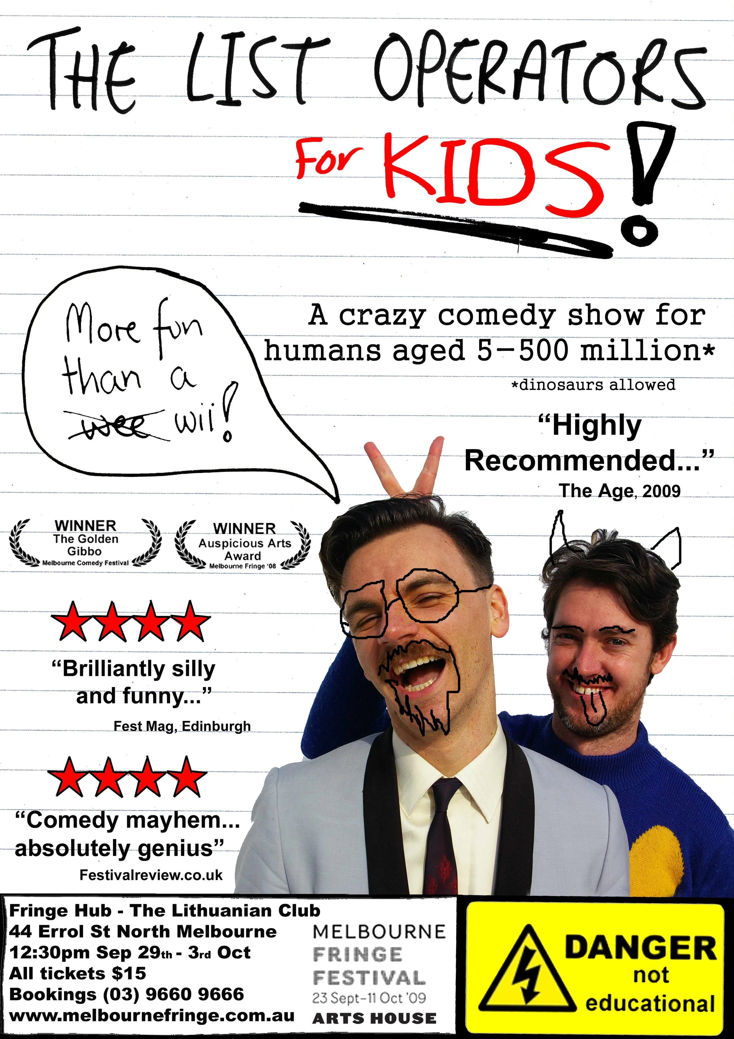 “An hour of rambunctious fun so clever, and so perfectly attuned to its audience, it wouldn't surprise me if The Listies became the first children's comedy act to win top gong at the Comedy Festival.” — The Age
